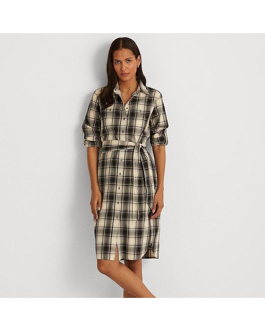 Lauren By Ralph Lauren Cotton Ralph Lauren Plaid Twill Shirtdress In Black Lyst