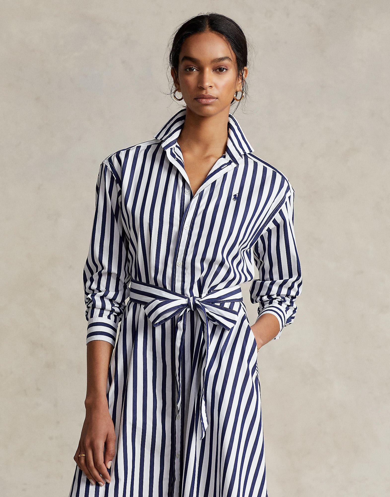 Ralph Lauren Striped Cotton Shirtdress In Dark Blue Blue Lyst